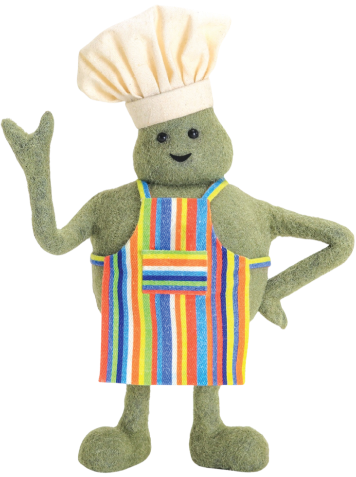 It changes daily but he goes completely bananas for most vegetables. Chef is an herbivore which means he eats only plant-based foods. Even the Tiny Burgers he loves are plant-based!