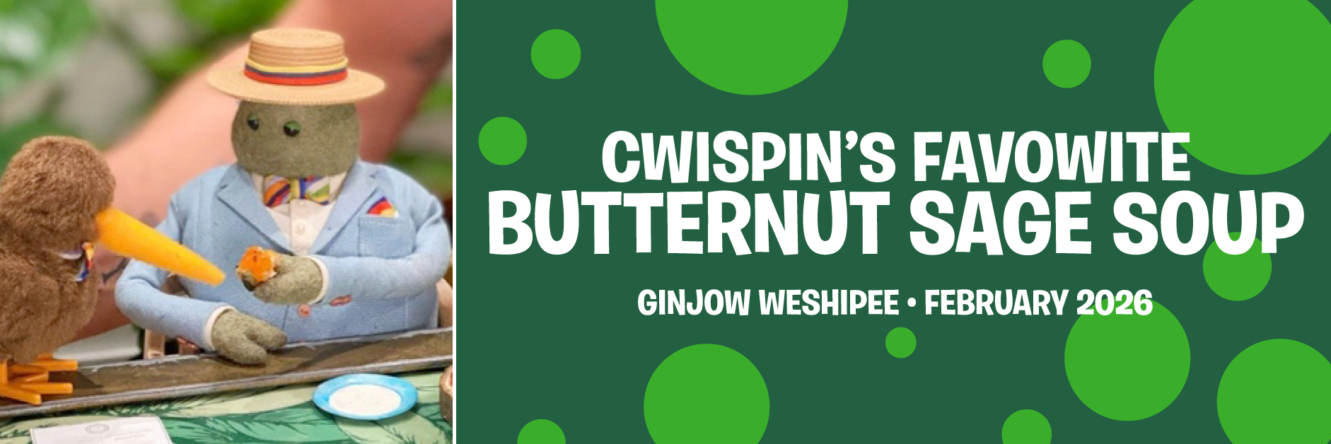 Crispin always asks Chef to make this wintertime warmer! He loves the way the ginger and sage blend with the nuttiness of the squash. But don’t just take Cwispin’s word for it, try it for yourself and your fwends: It’s a dewicious way to show yewww cawr!